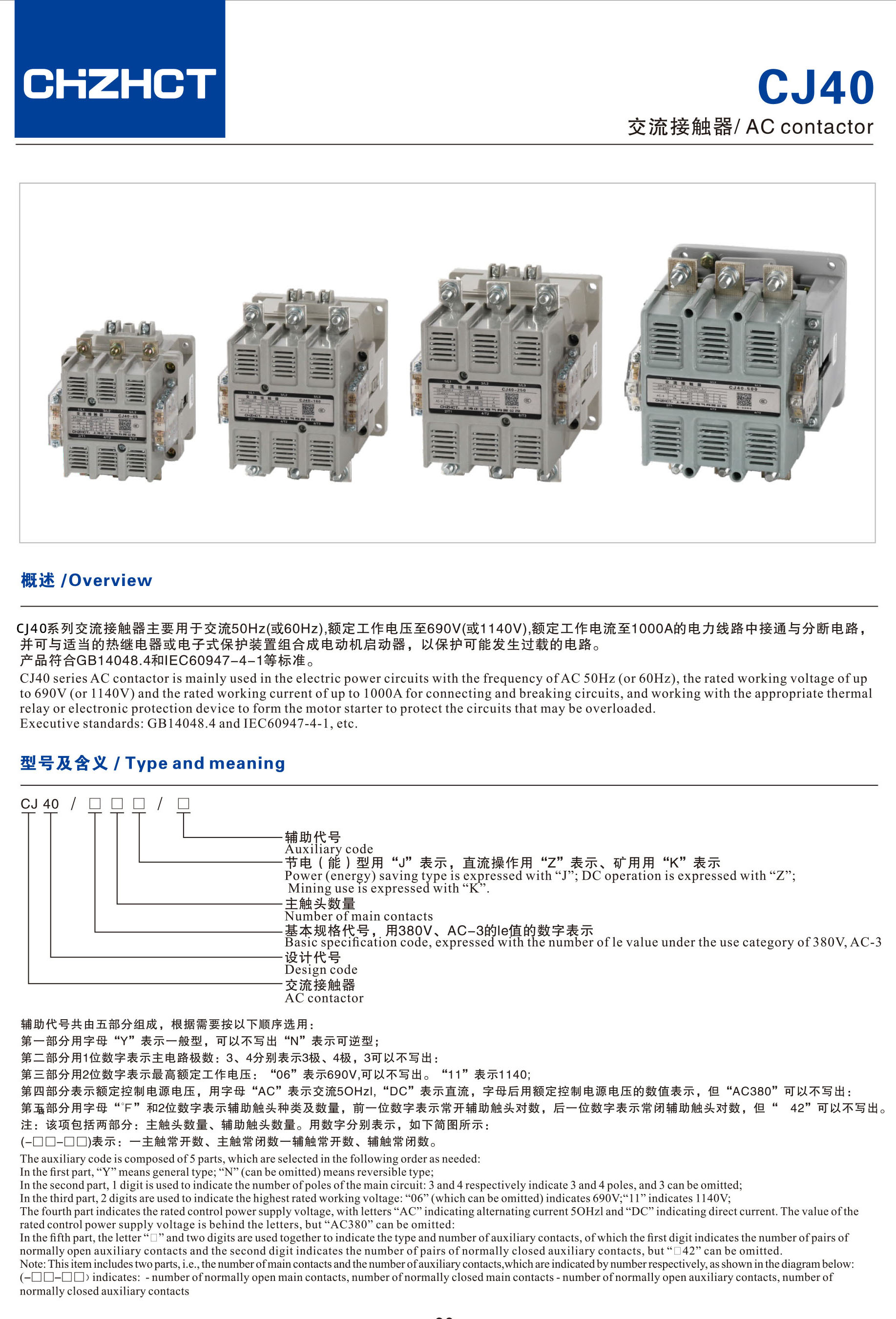 CJ40交流接触器_传统交流接触器_接触器_工业控制与保护_产品中心_710公海寰宇电气股份有限公司