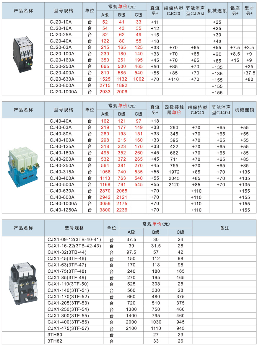 3TF、CJT1、CJX2、CJX2交流接触器