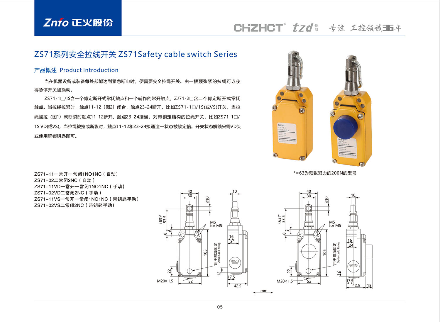 ZS71安全拉线开关_拉绳开关_行程/微动/跑偏/拉绳/超速_工业控制与保护_产品中心_710公海寰宇电气股份有限公司