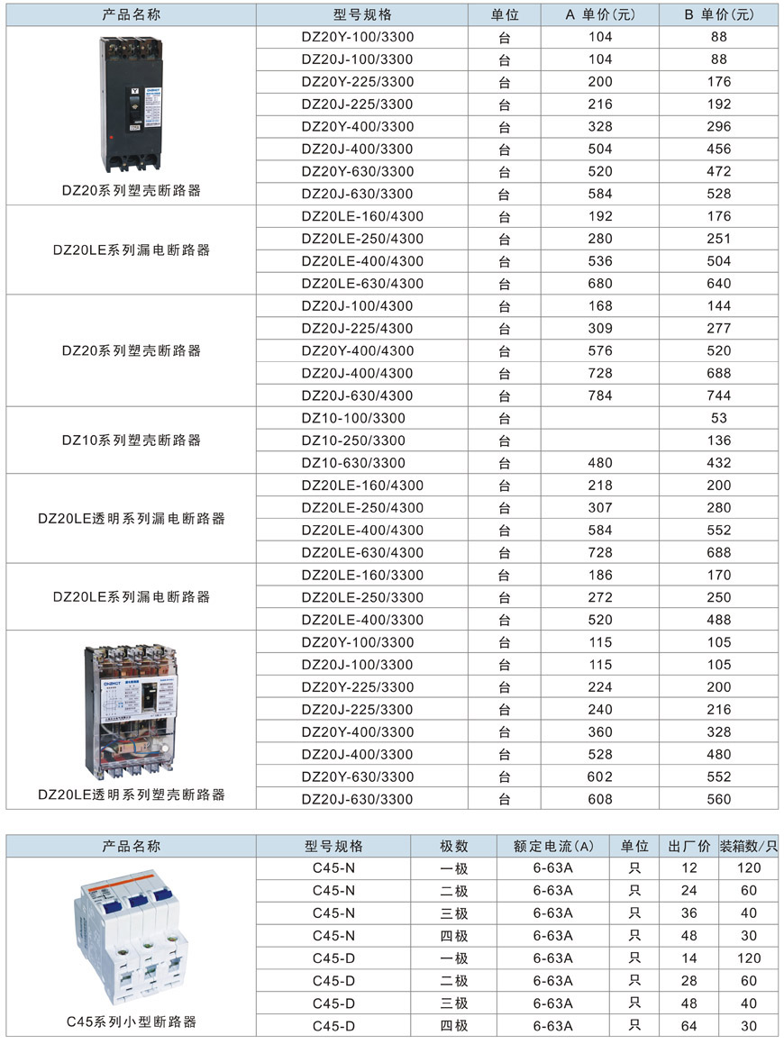 DZ20、DZ10、C45小型塑壳、漏电断路器
